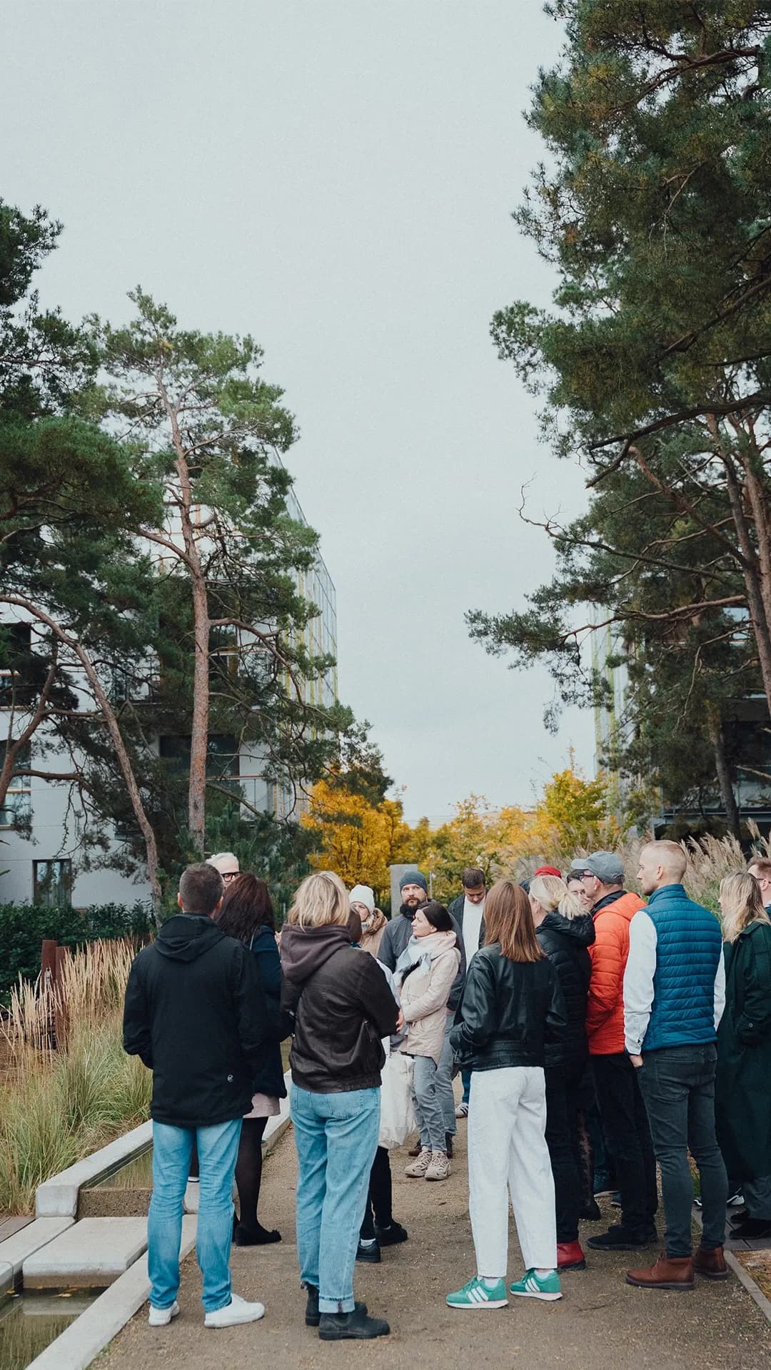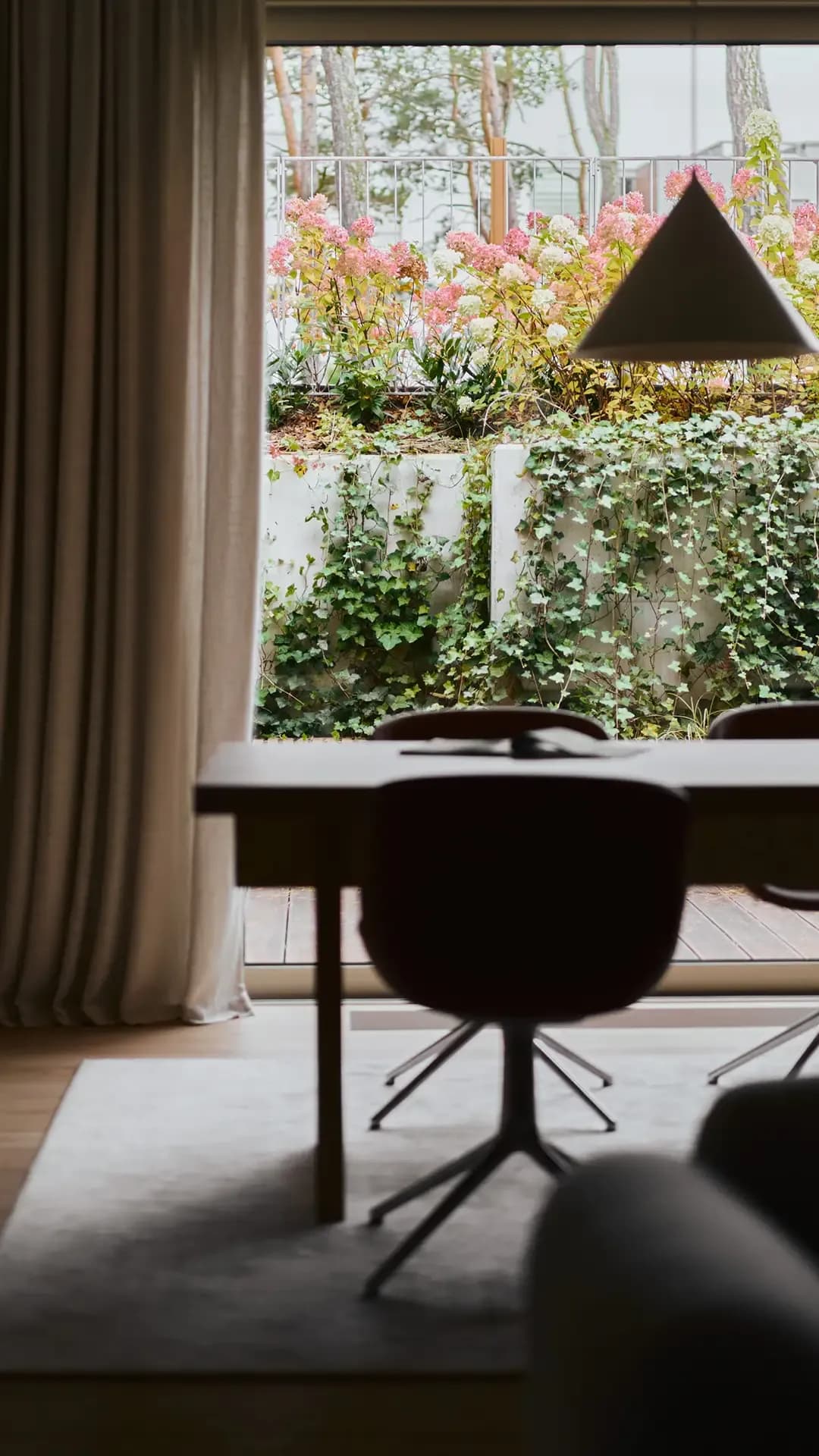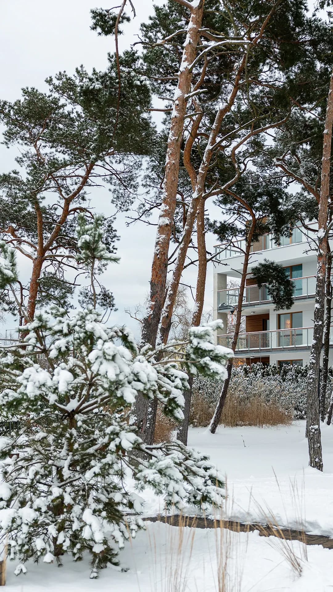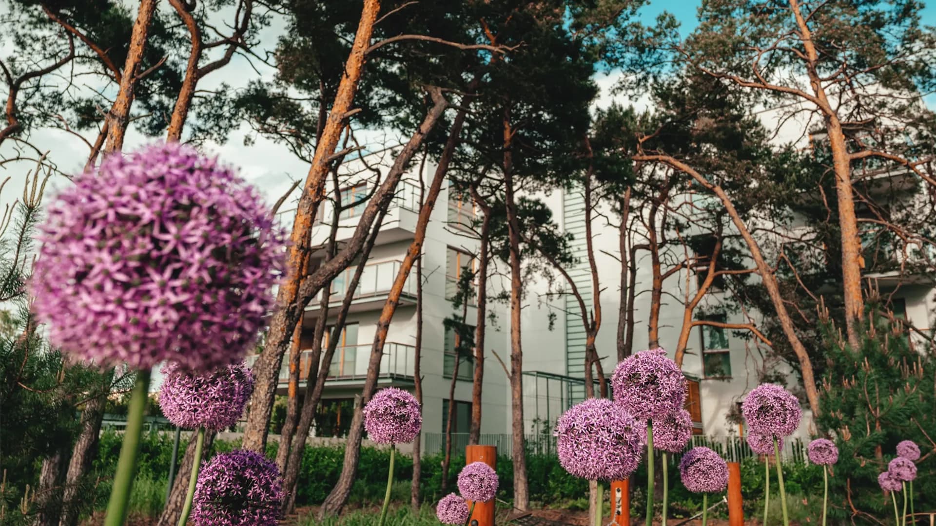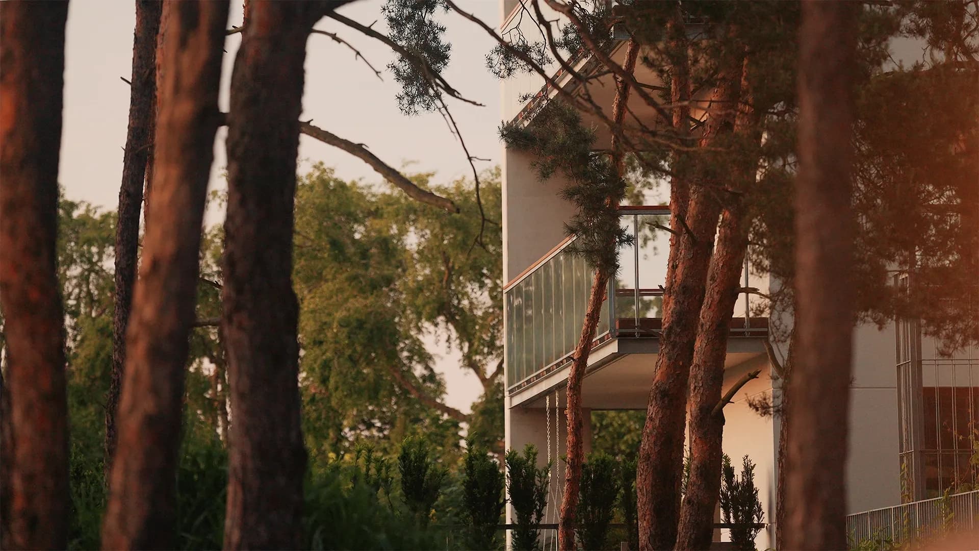 - Ewoluujący mikroklimat: Ponad stuletni, zachowany drzewostan jest dopełniony starannie dobraną roślinnością, tworząc na terenie osiedla bujną łąkę. Bogactwo runa leśnego, traw, krzewów ozdobnych oraz kwitnąca polana na dachu budynku fitness nie tylko stanowią dekorację, ale także stwarzają unikalny mikroklimat, który żyje, rośnie i ewoluuje. Sam kompleks, chociaż kameralny i celowo niski, właścicielom rezydencji na najwyższych poziomach oferuje rozpościerający ponad koronami drzew widok na Bałtyk.