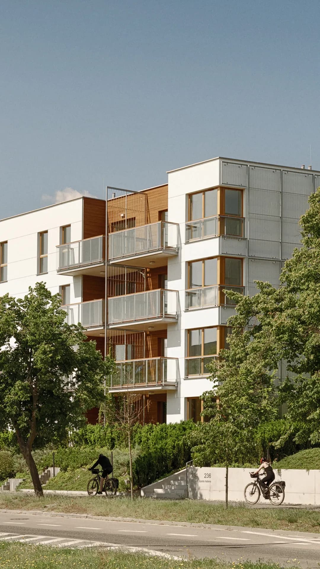 - Funkcjonalne układy mieszkań o różnych metrażach od 40,90 do 114,40 m²